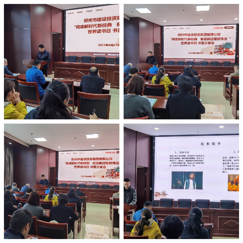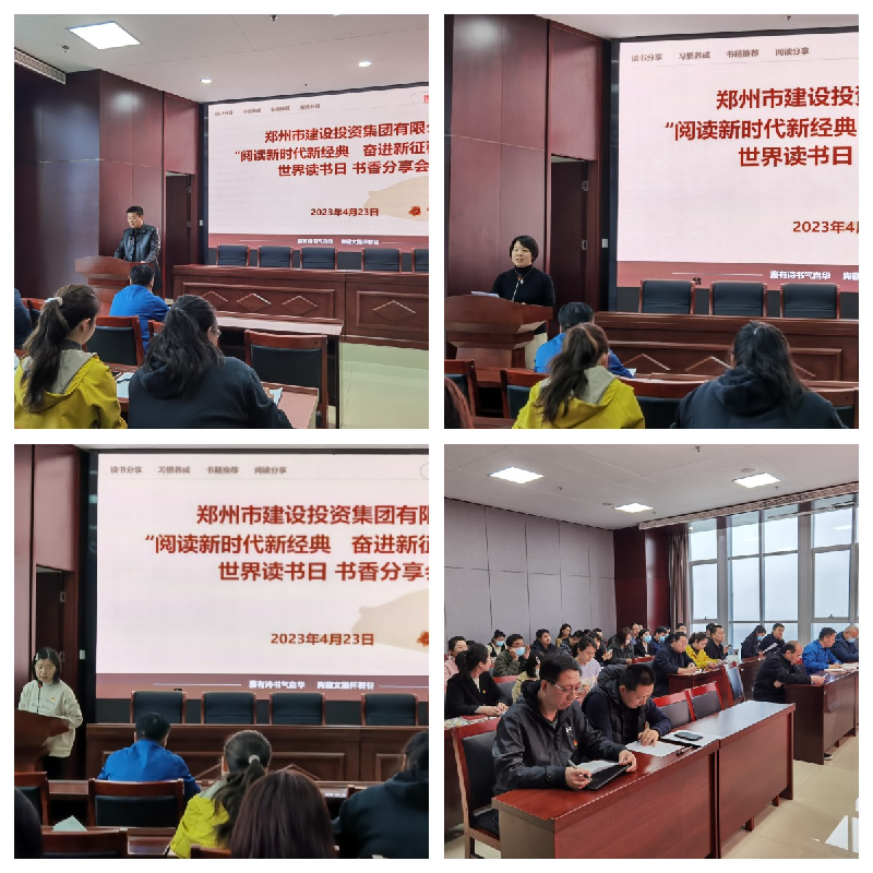 為推進全民閱讀、建設書香社會,以書香企業建設進一步堅定文化自信、提升文化自覺。4月23日上午,在第28個“世界讀書日”到來之際,鄭州市建設投資集團有限公司組織開展“閱讀新時代新經典 奮進新征程新偉業”讀書心得分享活動,公司各部室、各項目部、各控股公司60余人參加此次活動。