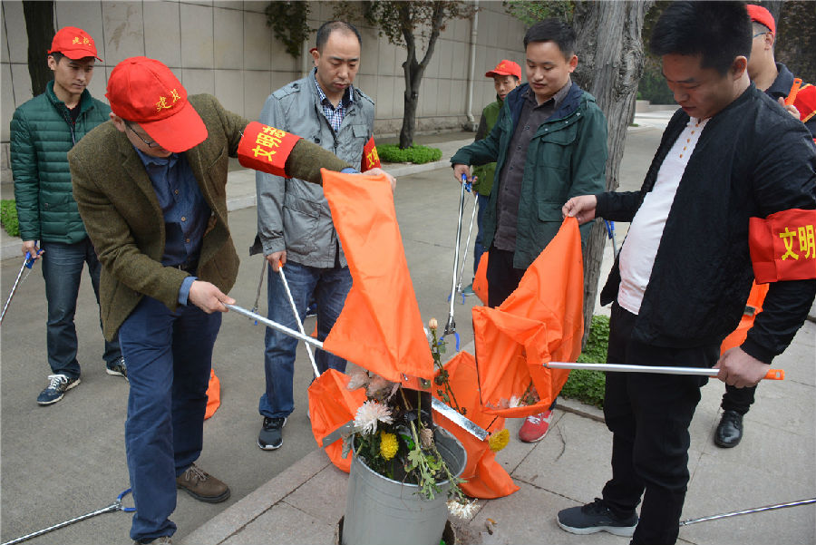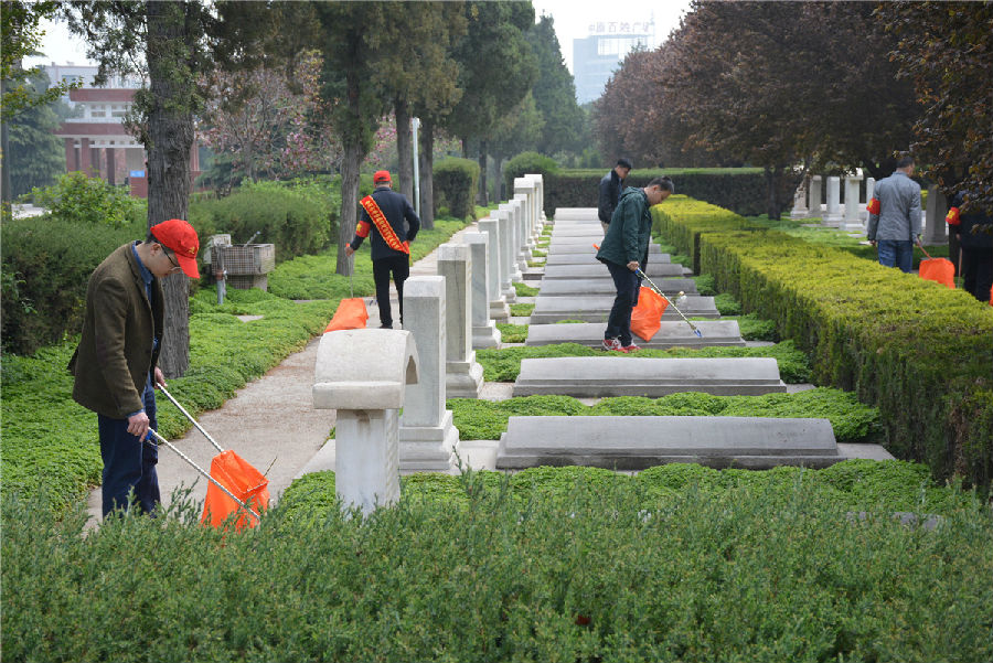 三、開展“倡議文明緬懷,減少廢棄污染”拾撿垃圾志愿服務(wù)活動(dòng)。緬懷先烈活動(dòng)結(jié)束后,市建投公司志愿者們?cè)诹沂苛陥@內(nèi)開展“倡議文明緬懷,減少廢棄污染”拾撿垃圾志愿服務(wù)活動(dòng)。每位志愿者都手持垃圾鉗,認(rèn)真將散落在紀(jì)念碑前以及隱藏在雜草中的廢棄鮮花、飲料瓶、紙張等垃圾拾撿起來放入提前準(zhǔn)備好的垃圾袋中。活動(dòng)持續(xù)一個(gè)小時(shí),志愿者們?cè)诩赖煜攘业耐瑫r(shí)以自己的實(shí)際行動(dòng)表達(dá)崇敬之情,并倡導(dǎo)以獻(xiàn)一束花、敬一杯酒、植一棵樹、清掃墓碑等方式寄托哀思,將祭拜逝者的傳統(tǒng)習(xí)俗以更加環(huán)保、健康、安全、文明的方式表達(dá),營(yíng)造文明祭祀的良好氛圍。