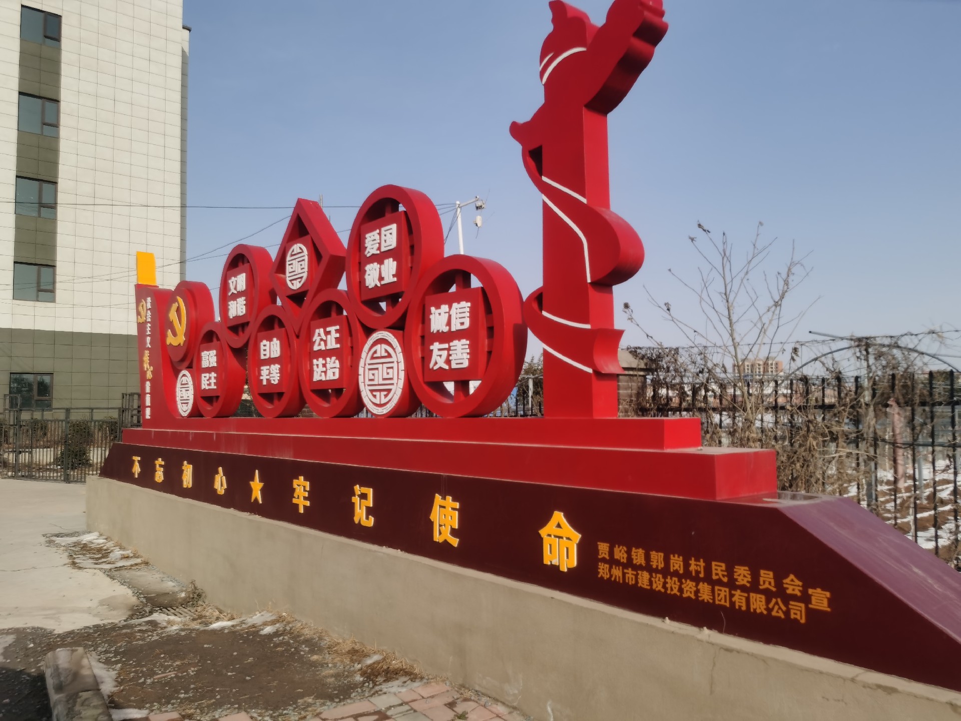 營造氛圍,助推文明創建“添動力”。在前期多次溝通基礎上,建投集團與郭崗村共同制作了“社會主義核心價值觀”主題墻1面,精神文明宣傳欄10塊,并完善了黨建宣傳長廊和村史館建設。“社會主義核心價值觀”主題墻由金屬底座和亞克力面板共同組成,整體大小約80平方,位于郭崗村村委后方的廣場中央。上方呈現著“24字”核心價值觀內容,清晰醒目,成為扮靚村容村貌的風景線和展現文明風尚的“新名片”。精神文明宣傳欄涵蓋習近平新時代中國特色社會主義思想、深入貫徹落實黨的二十大精神、弘揚優秀傳統文化、倡樹文明新風等內容。黨建宣傳長廊和村史館是由建投集團在上輪結對幫扶中建設完成并已投入使用,本輪幫創進一步完善了鞏固脫貧攻堅成果展示、“五星支部”創建等內容。
